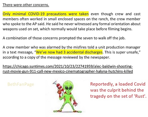 Also, reportedly there were Covids on the set too running amok and no safety measures were in place for loaded guns, loaded Covids, or a loaded Baldwin, so who knows what went on. I guess this story is developing while Halyna Hutchins missed out on her precious Halloween this year which she seemed to love according to a bunch of online photos of that gal. I guess this year, her costume was obviously of a ghost as we wonder if she will haunt Alec this year and drive him over the edge as if that scary wife of his isn't enough to make him jump off a cliff.