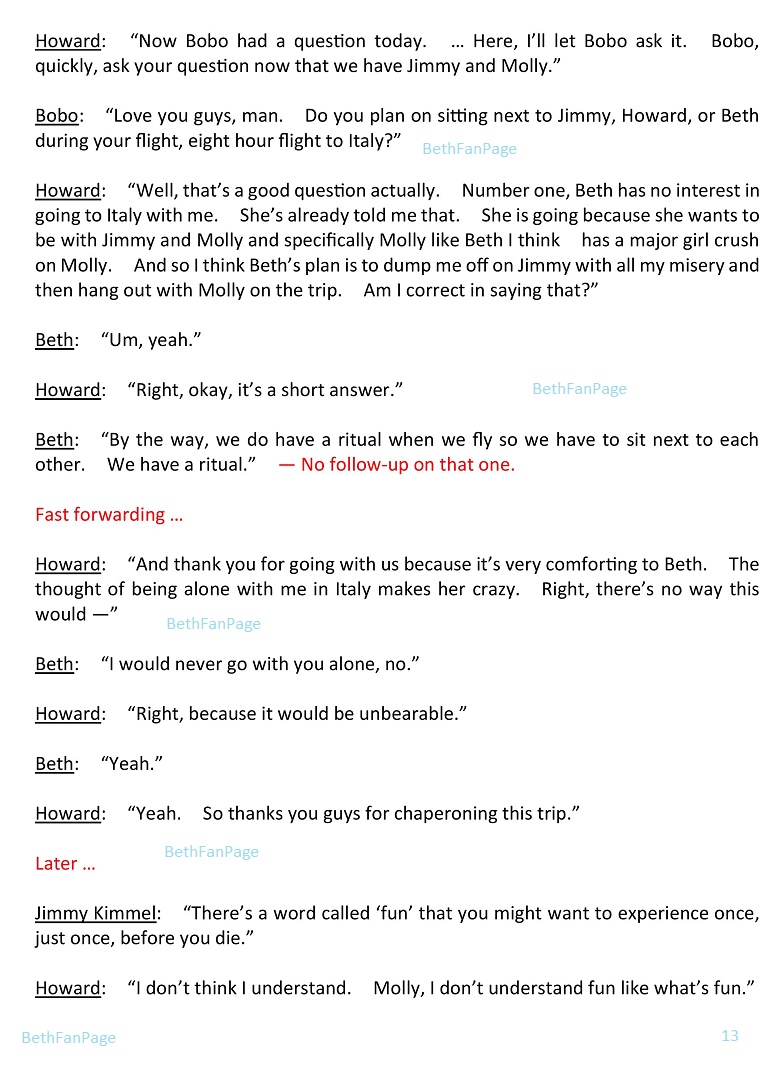 Yes, interesting timing for Howard wanting to show up in Italy although he never revealed the actual date of his travels with some saying Howard, Beth, et al, already went and came back and the videotape of the trip will be released in bits and beach bites.